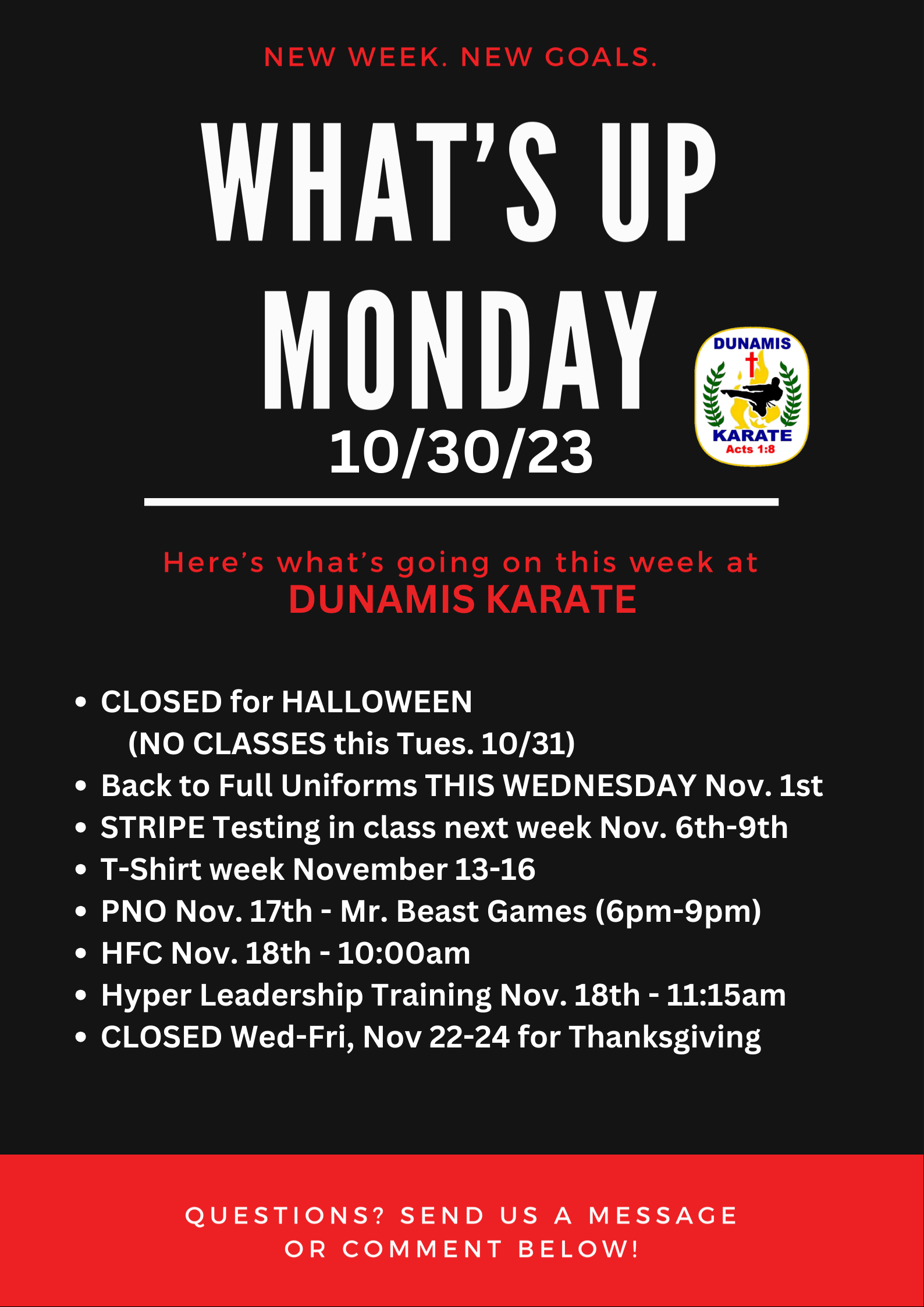 What's Up Monday - Dunamis Karate Announcements for 9/18/23